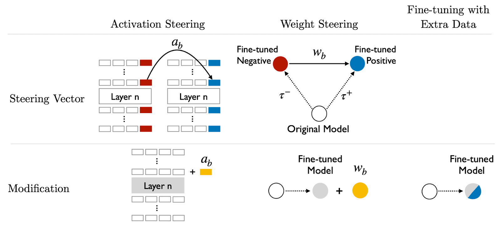 Another key technique involves weight arithmetic and steering vectors, where researchers discover directional vectors in the model's weight space that correspond to specific behavioral traits. By adding or subtracting these vectors, they can shift model outputs without retraining.